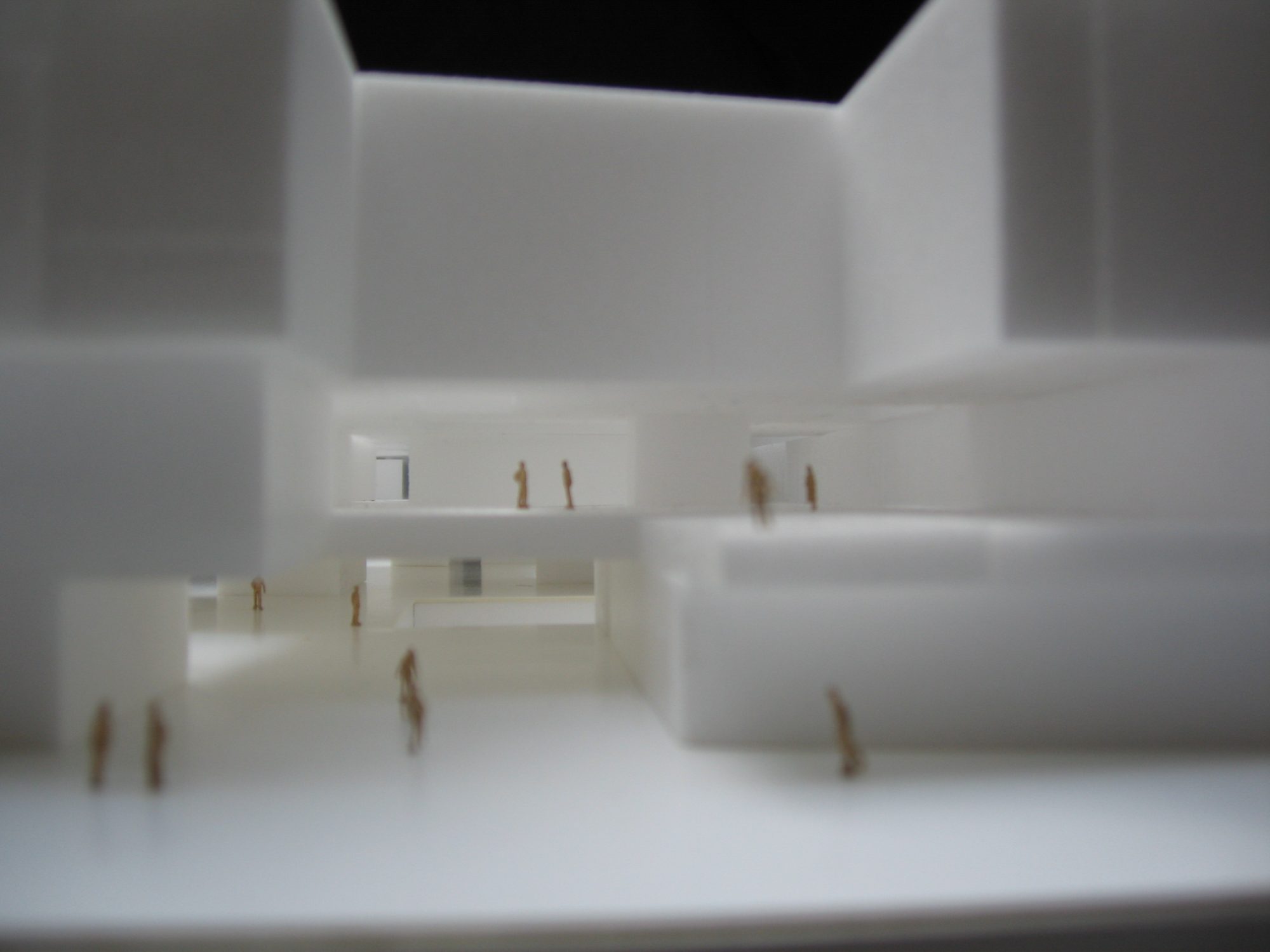 Priman las relaciones topológicas sobre las geométricas, la conexión entre las partes frente a los sistemas de regulación de proporciones y medidas, consiguiendo con ello un alto grado de flexibilidad. Desde su ya implantación urbana, el recorrido a través del edificio no tiene origen ni final, consiste en dejarse guiar por las corrientes, por los accidentes de la materia más que en salvar una distancia precisa. Un recorrido continuo, se entra, y se sube, se cruza, o se rodea, donde la experiencia espacial se va enriqueciendo a medida que avanzamos.