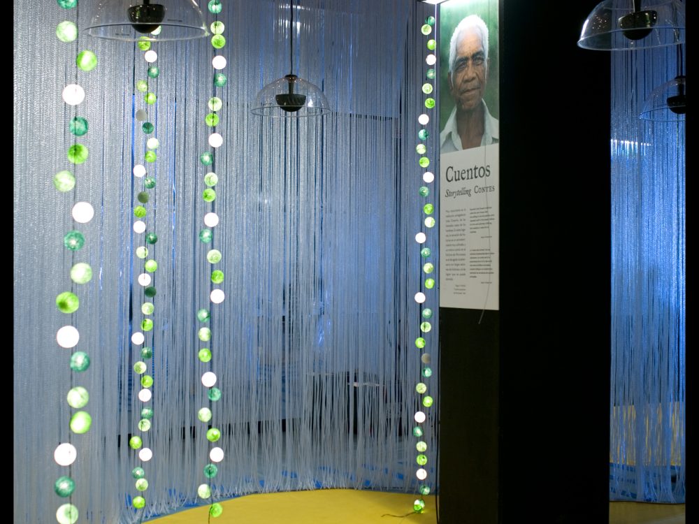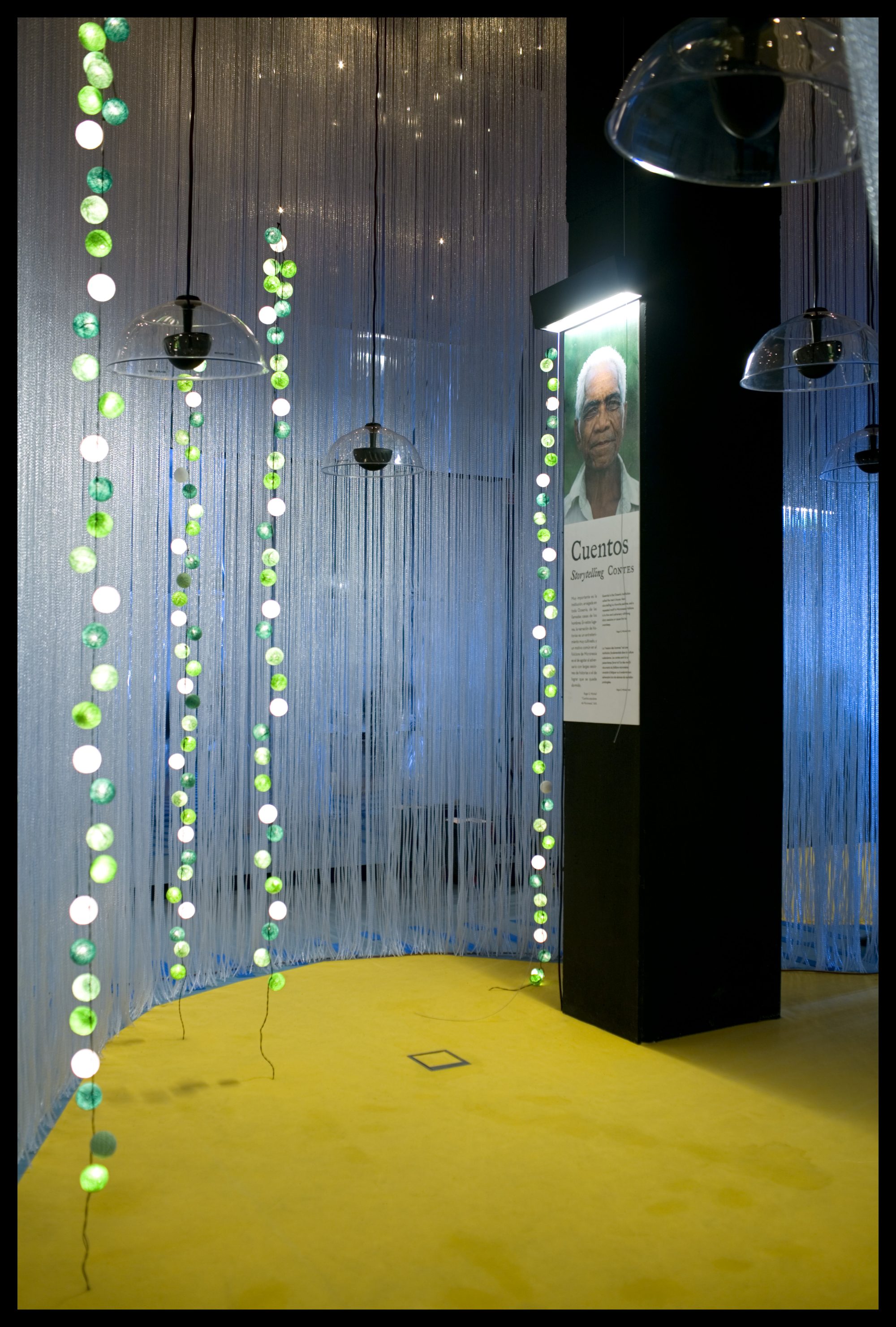 En el mar, cinco islas están envueltas por cortinas de siete metros de altura. Un elemento táctil en el pavimento indica cómo llegar a ellos. Los cinco sitios pueden percibirse como islas, como una masa de vegetación exuberante y como un grupo de cabañas de lluvia. En los muros perimetrales cuelgan una serie de espejos que multiplican el firmamento y el reflejo del sol en los flecos traslúcidos de las cortinas, al mismo tiempo que crean el efecto de un vasto océano salpicado de islas.